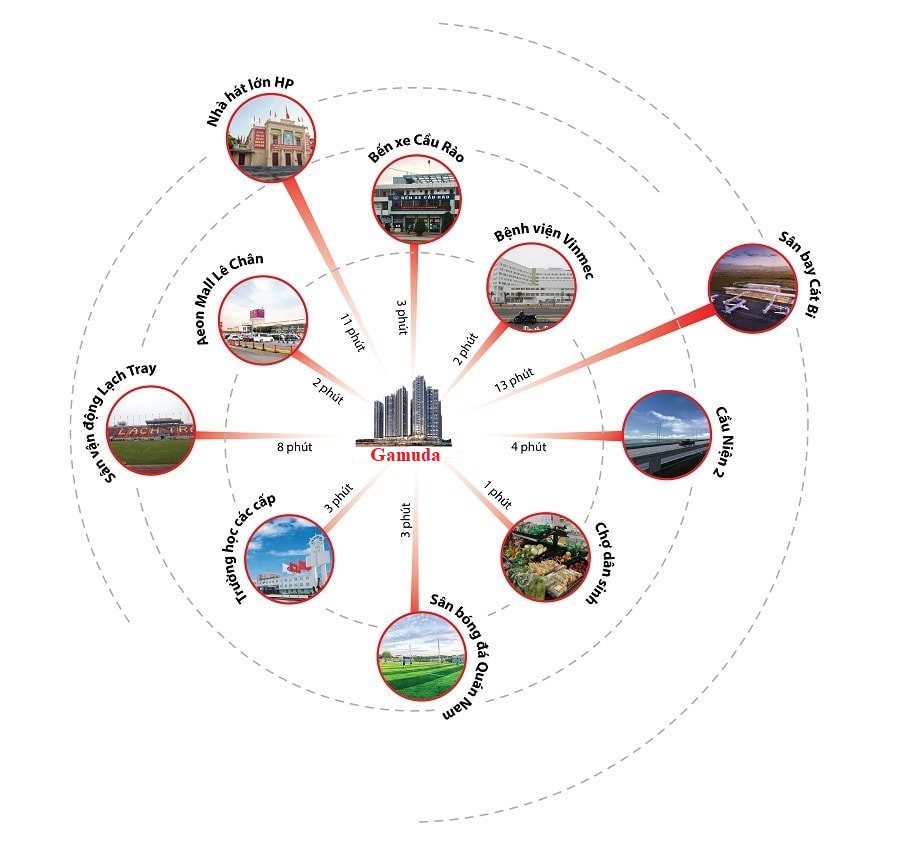 – Cách sân bay quốc tế Cát Bi: chỉ 9km, khoảng 15 phút lái xe